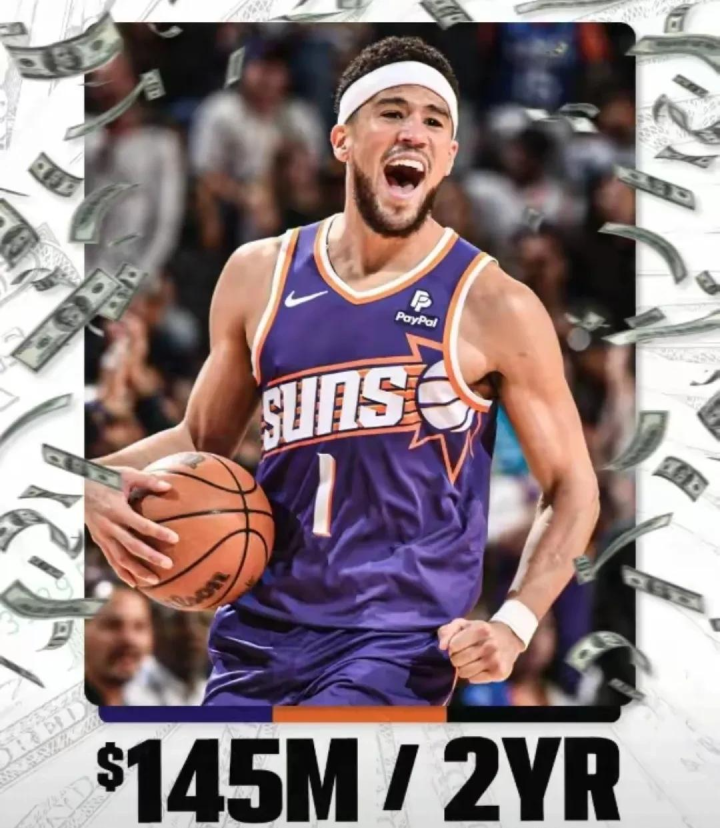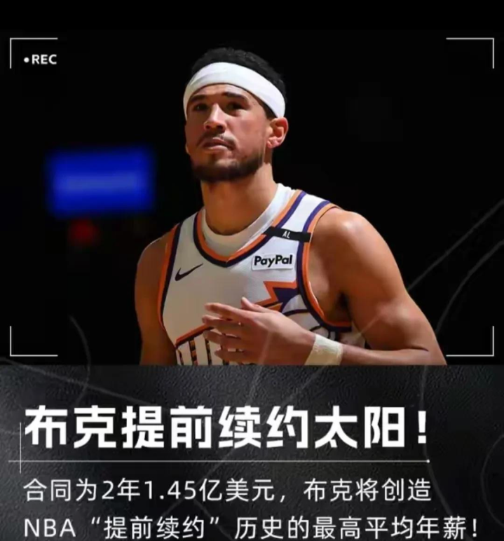 美媒ESPN名记者Shams Charania报道称,德文-布克的经纪人宣布,布克与太阳队达成了为期两年、总额高达1.45亿美元的顶薪提前续约合同。据此,布克的平均年薪将达到7250万美元,超过了雷霆队核心球员、双料MVP亚历山大新近创下的7125万美元的年薪纪录。亚历山大与雷霆队签订了为期四年、总额2.85亿美元的合同。
